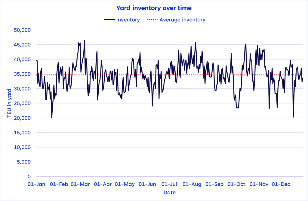 Figure 1: Yard inventory over time vs. average yard inventory.